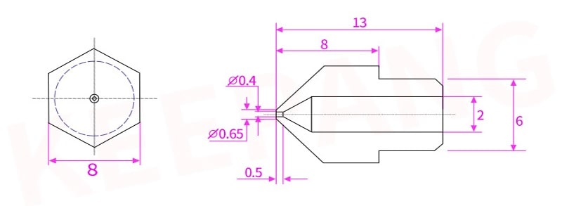Diamètre extrusion : 0.2 / 0.3 / 0.4 / 0.5 / 0.6 / 0.8mm.