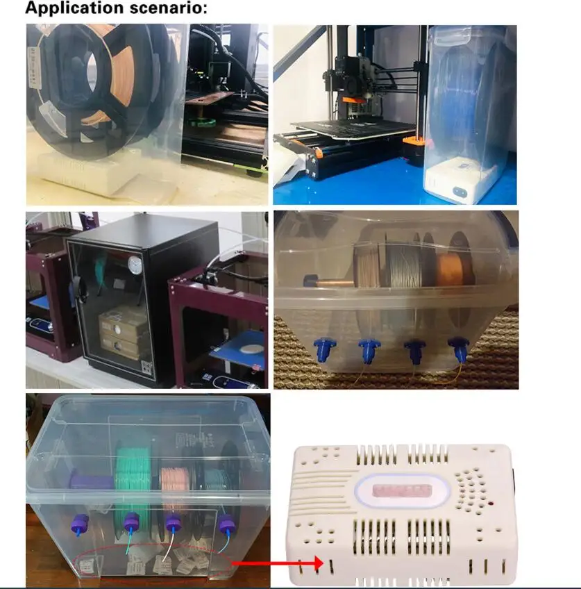 Halten Sie Ihre Filamente mit diesem Luftentfeuchter immer trocken. Wenn der Luftentfeuchter nass ist, ändern die Silikaperlen ihre Farbe. Entfeuchtet durch Anschluss an 220 V Strom.