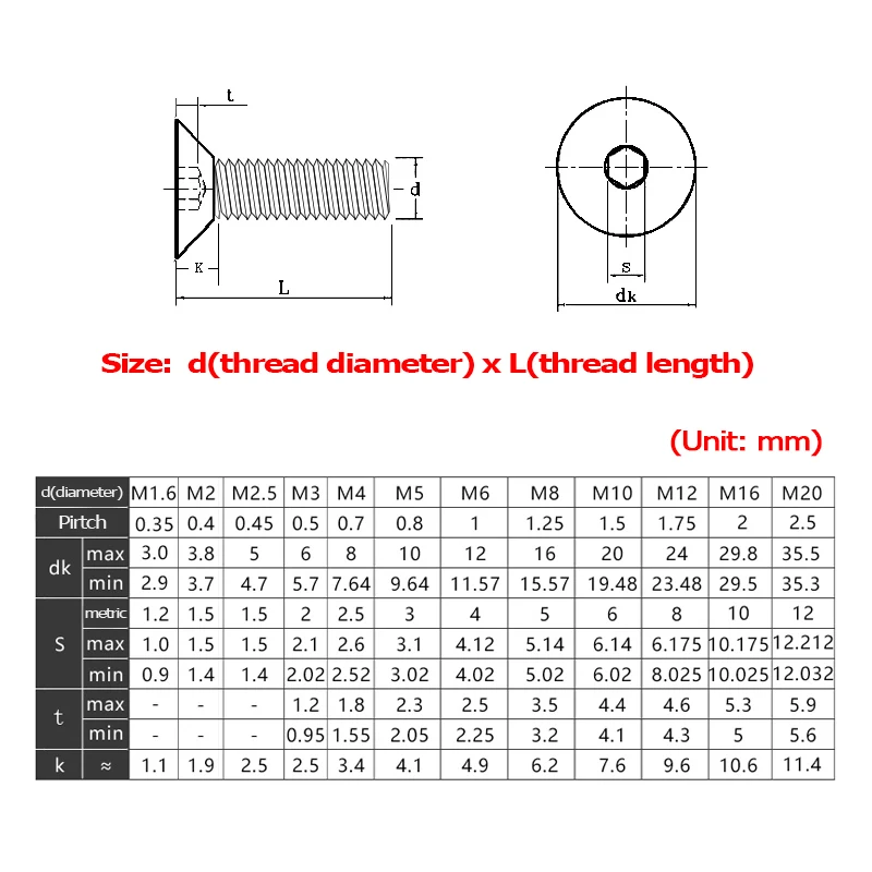 Passo filettatura: 0,5 mm (M3) / 0,7 mm (M4) / 0,8 mm (M5)